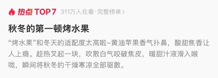 天气越来越冷,烤水果已经成为人们餐桌上的新时尚选择。近日,第一期#秋冬烤水果餐登上了社交平台热门榜单。网友晒照△网友晒的烤榴莲△网友晒的烤水果为什么烤水果这么受欢迎?果香与健康在网上融为一体。到底是什么神秘力量让烤水果如此受年轻人青睐?烤过的水果变得更加芳香和甜美。水果中的可溶性糖在高温下发生美拉德反应,烘烤时产生浓郁的香气。 △网友晒出的烤苹果,通过“烤”来缓解你的怕冷感,通过“烤”来让你变得健康。它不仅美味,而且烘烤可以防止水果冷却,对肠胃温和。它还可以软化水果中含有的不溶性膳食纤维,进一步减轻消化系统的负担。特别注明适合消化能力弱的人。此外,加热还可以改善水果的健康状况。抗氧化作用 水果中的抗氧化物质包括各种天然色素(类胡萝卜素、番茄红素等)、酚类和黄酮类化合物。加热虽然总量减少,但可以将这些物质从结合态转变为游离态,从而提高抗氧化效果,有助于降低血脂。请务必在烘烤前阅读本文,以避免这些“甜蜜陷阱”。芳香的烤果固然诱人,但为了吃得更安全,一定要做好预防措施。维生素B和C的“热敏感”特性是毫不掩饰的。虽然水果在烘烤后仍保留其高营养价值,但在烘烤过程中不可避免地会损失。加热。一些维生素B和C,特别是维生素C,是水溶性营养素,对高温敏感,在80℃以上的温度下会被破坏。所以从营养的角度来看,生食是最好的选择。更好的选择是富含维生素C的橙子、橙子和猕猴桃。烤水果具有“升高”血糖的作用,加热过程会破坏水果的细胞壁。水果会促进糖分的释放,增加血糖水平上升的速度,这对血糖控制产生负面影响。因此,糖尿病患者、高血脂患者不宜吃烤水果。不推荐。水果吃多了,就会干,“火”就藏在热气里。有些烤水果很热,可能会引起炎症症状。不要燃烧这些水果,因为它们会导致“脾气暴躁”。带有封闭外壳的食物,例如龙眼,在烧烤时更容易爆炸。小心不要烫伤自己。另外,如果用微波炉烘烤水果,应避免使用葡萄、蓝莓等,含有盐离子的水果会引起爆炸和火花。 △消防员将切开的葡萄干放入微波炉进行实验时,出现火花d. △在一次实验中,消防员将切碎的蓝莓放入微波炉中,但也出现了火花。火势会变得更加旺盛,果香也会蔓延开来。学习科学烘焙水果,安心收获温暖~你已经组织好第一次秋季水果烘焙了吗?